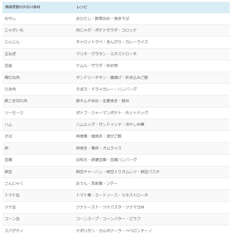 例えば安い食材を利用してどのような料理ができるかを「クックパッド」などで検索すると多くのレシピがでてきます。